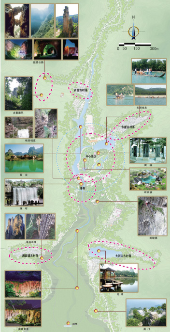 規(guī)劃合理解決了新農(nóng)村建設(shè)和旅游開發(fā)的矛盾,協(xié)調(diào)了錫崖溝村與景區(qū)之間的利益沖突,為錫崖溝風(fēng)景區(qū)和村莊建設(shè)繪制了美好的發(fā)展藍(lán)圖。規(guī)劃提出了“錫崖溝:鬼斧神工、太行天坑、世外桃源、現(xiàn)代愚公”的主題形象定位,根據(jù)旅游區(qū)資源和開發(fā)現(xiàn)狀,充分考慮旅游區(qū)功能完善和旅游發(fā)展的需要,將錫崖溝風(fēng)景區(qū)規(guī)劃為太行古村、南峽美景、南湖戲水、錫崖大瀑布、桃花塢、東湖親水、西谷觀景、古寨遺風(fēng)、北掛奇觀、北入口景觀、南入口服務(wù)區(qū)十一個功能分區(qū)。